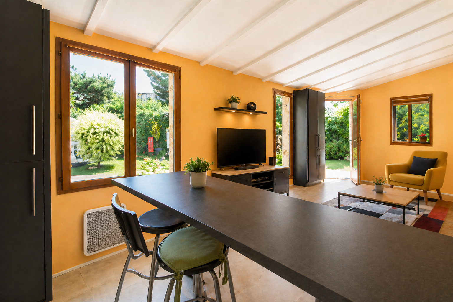 Atout majeur de ce bien : un studio indépendant de 27 m², parfaitement conçu pour offrir une autonomie totale. Doté de sa propre cuisine et d’une salle d’eau avec w.c, il constitue une opportunité rare — idéal pour accueillir un proche, créer un espace professionnel, ou bénéficier d’un revenu locatif sans porter atteinte à l’intimité de la maison principale.