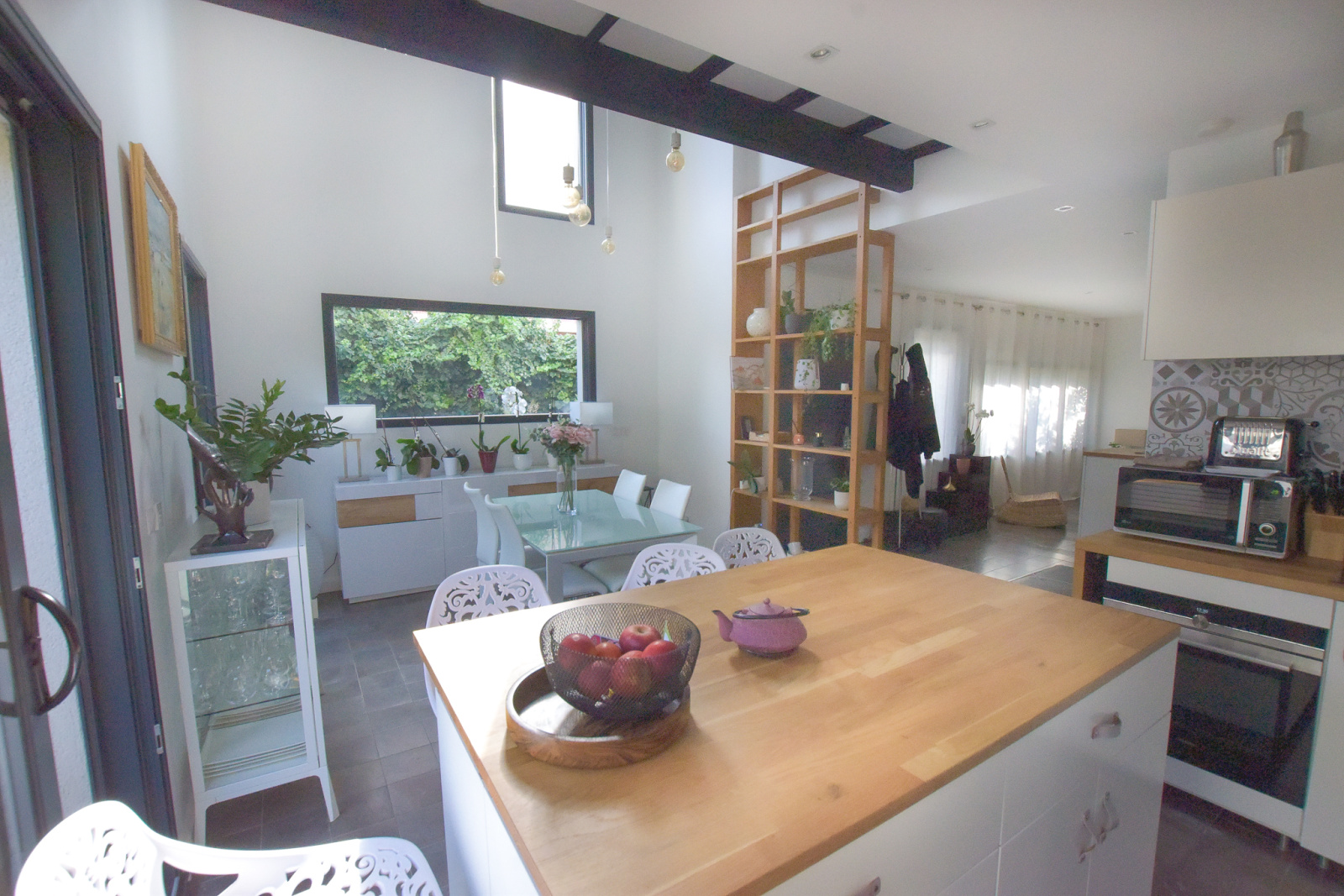 Dès l'entrée, vous serez accueilli par un espace de vie ouvert de 50m2, sublimé par une cuisine équipée avec îlot central, un salon, salle à manger cathédrale, offrant ainsi un cadre convivial et harmonieux pour les moments en famille ou entre amis.