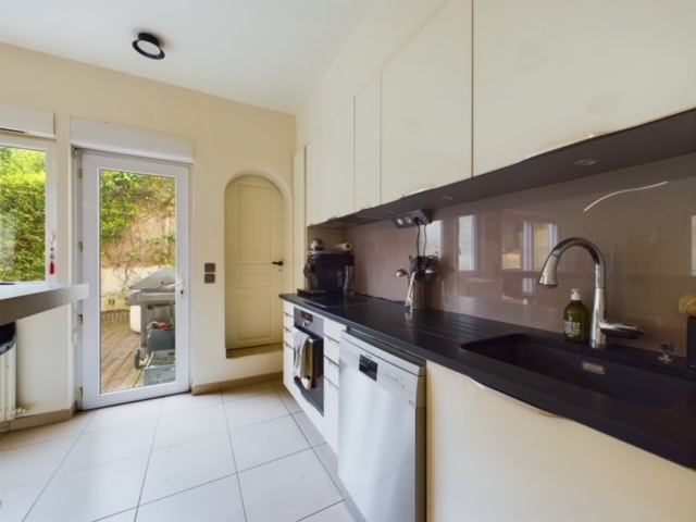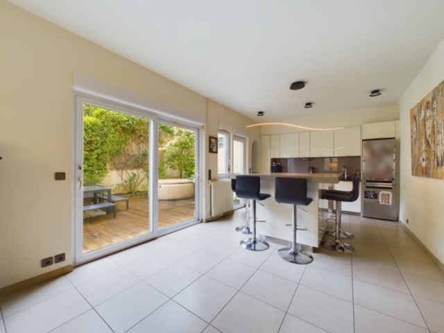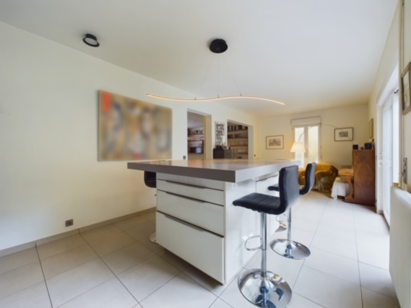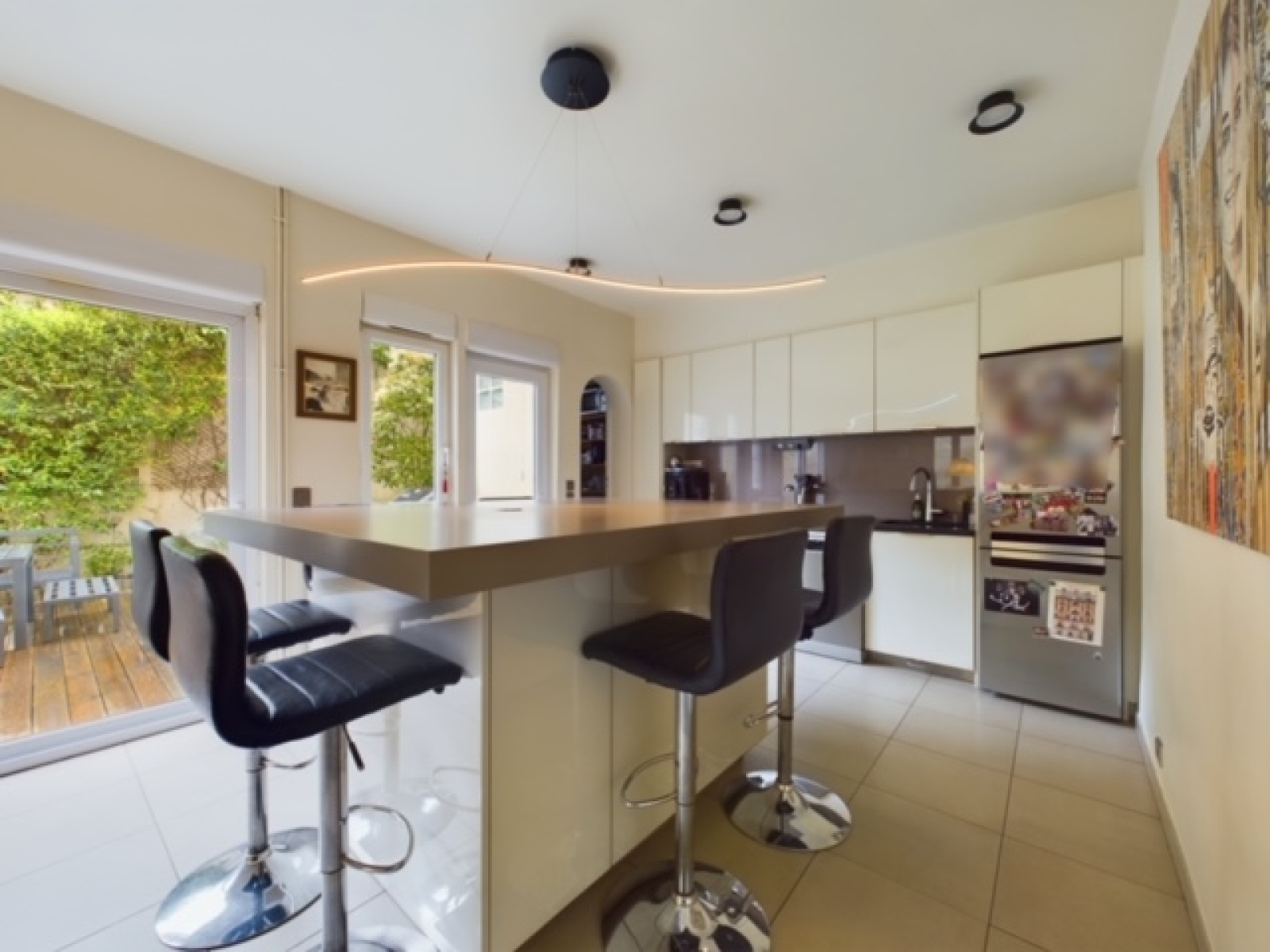 Dès l’entrée, un vaste séjour baigné de lumière s’ouvre sur une salle à manger chaleureuse et une cuisine moderne équipée Schmidt, conçue autour d’un grand îlot central. Ce bel espace de vie, pensé pour la convivialité, donne directement sur une terrasse privative, parfaite pour les moments de détente et de partage. Une chambre pouvant également servir de bureau, accompagnée de sa salle d’eau, ainsi qu’un WC séparé, complètent ce niveau.