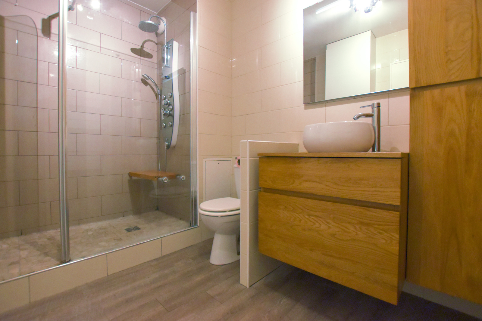 L’espace nuit se compose de trois chambres avec rangements intégrés, dont une suite parentale avec salle d’eau et WC privatifs. Une salle de bain supplémentaire ainsi qu’un WC indépendant viennent compléter cet agencement optimisé pour un confort absolu.