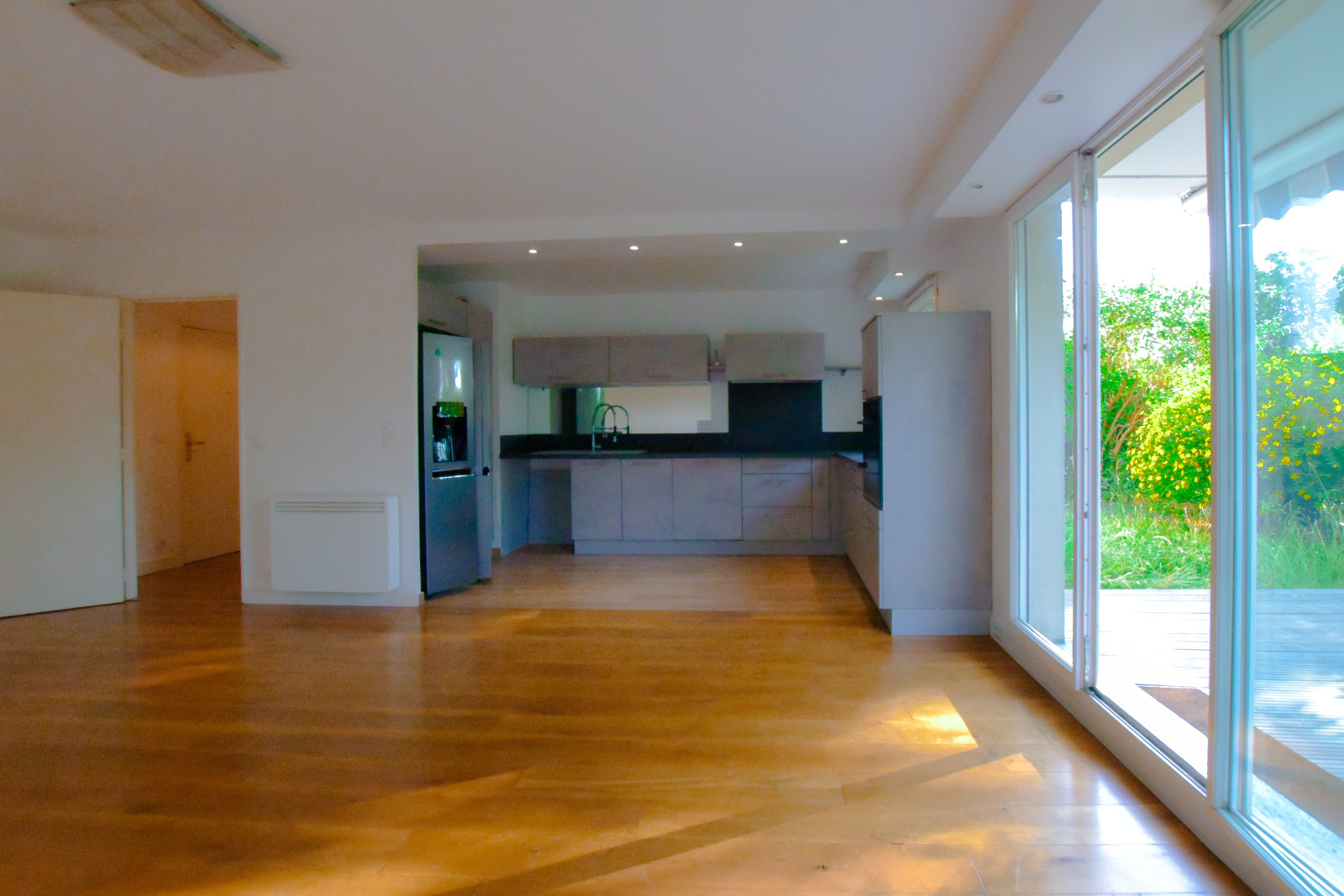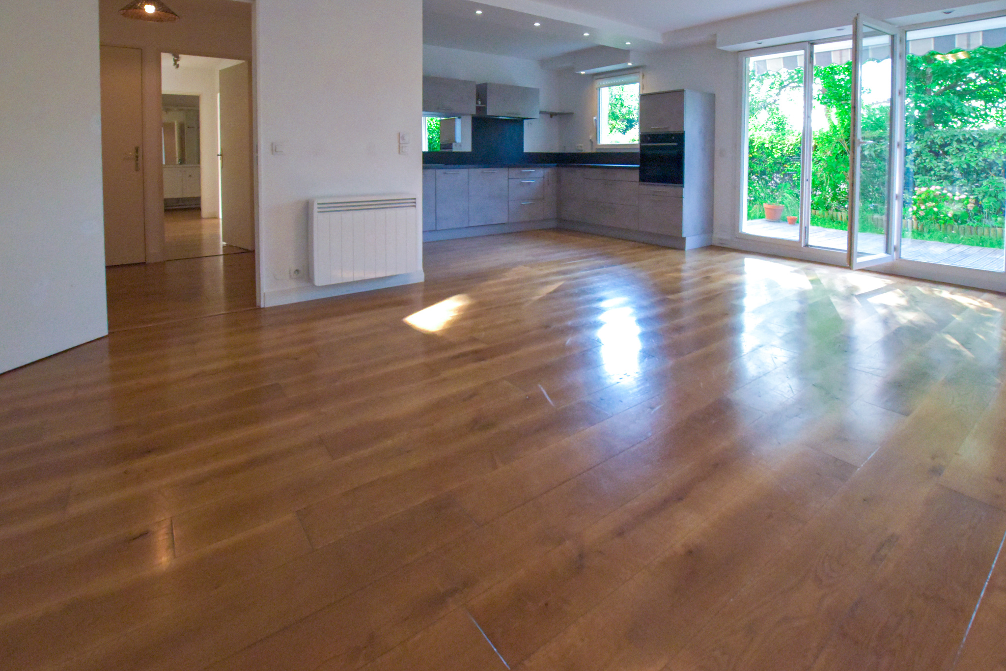 Dès l’entrée, sécurisée par une porte blindée, vous serez séduit par des volumes généreux et des prestations haut de gamme. Le vaste séjour de 33 m², sublimé par un parquet en chêne massif, s’ouvre sur une cuisine américaine entièrement équipée, offrant un espace de vie moderne et fonctionnel. Atout rare et précieux, chaque pièce donne un accès direct à un superbe jardin privatif de plain-pied de 65 m², exposé ouest. Sans vis-à-vis et offrant une vue dégagée, cet espace extérieur avec terrasse est idéal pour se détendre en toute tranquillité.