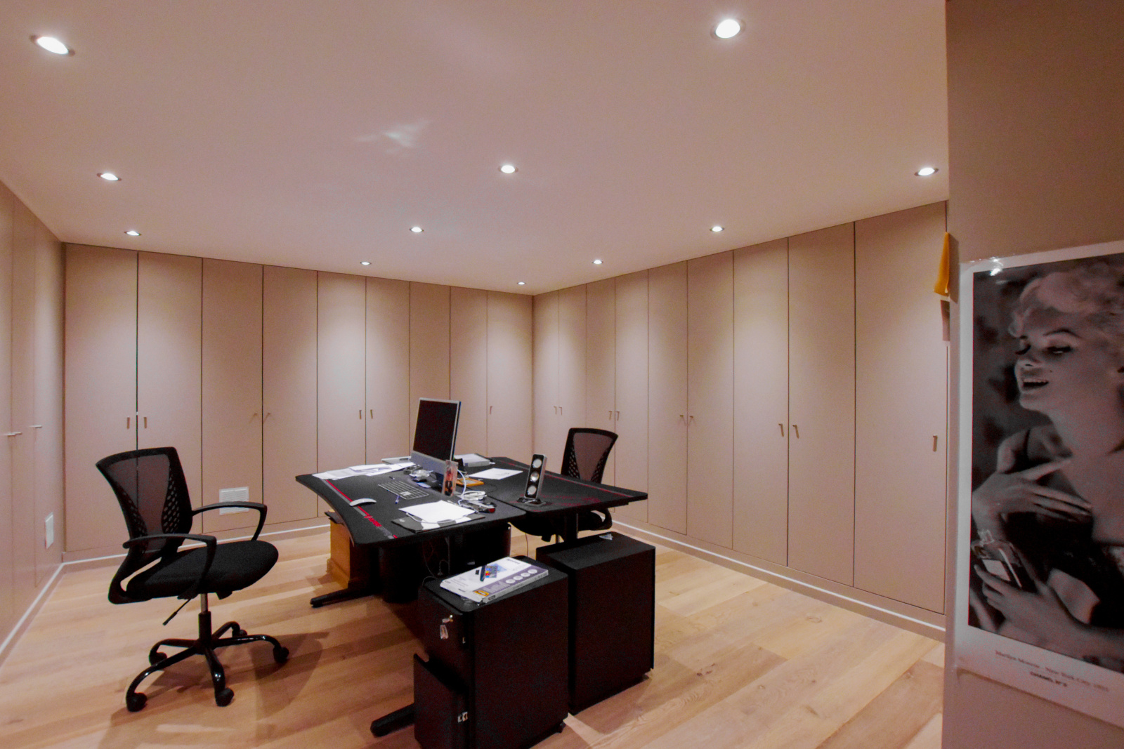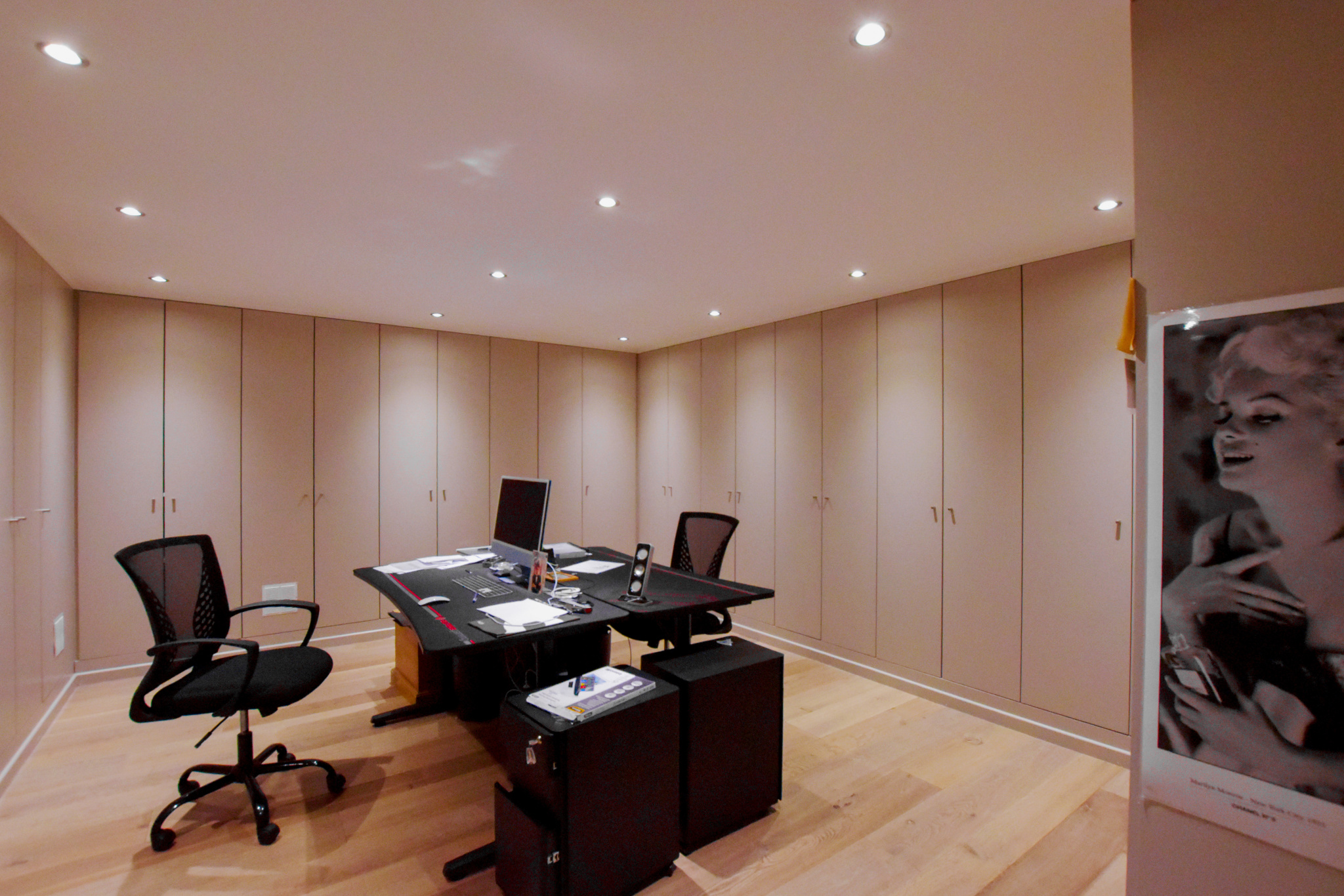 Le sous-sol de la villa n'est pas en reste. Il comprend un bureau fonctionnel avec de nombreux rangements, une grande salle de jeux qui fera le bonheur des petits et des grands, ainsi qu'un dressing supplémentaire. La belle hauteur sous plafond du sous-sol en fait un espace agréable et parfaitement exploitable.