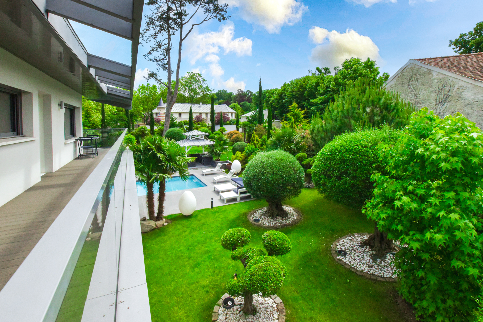 Ce domaine exclusif, niché au cœur de cinq résidences prestigieuses, offre un cadre de vie exceptionnel, entièrement privé et sécurisé. L'accès se fait par deux entrées distinctes situées sur l'avenue du Château de la Malmaison, assurant une discrétion et une tranquillité absolues.